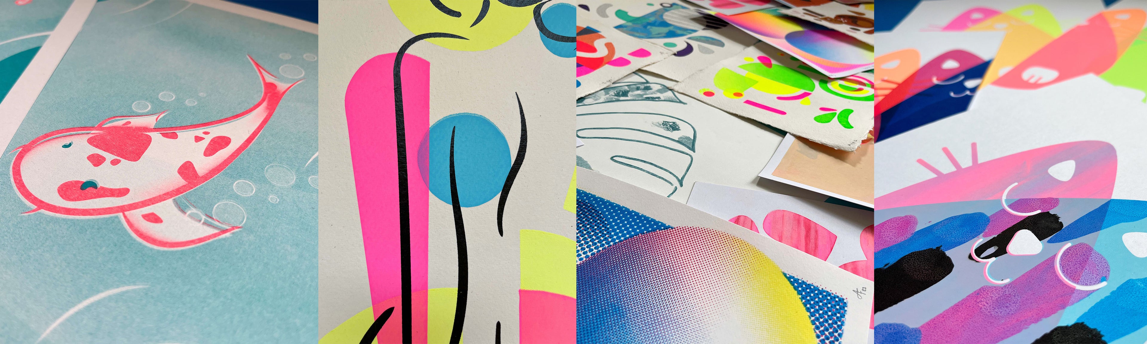 Embrace colour with neon-drenched artwork, made by Abi, in Manchester, UK. Here you'll find limited edition Screenprints and Risographs.