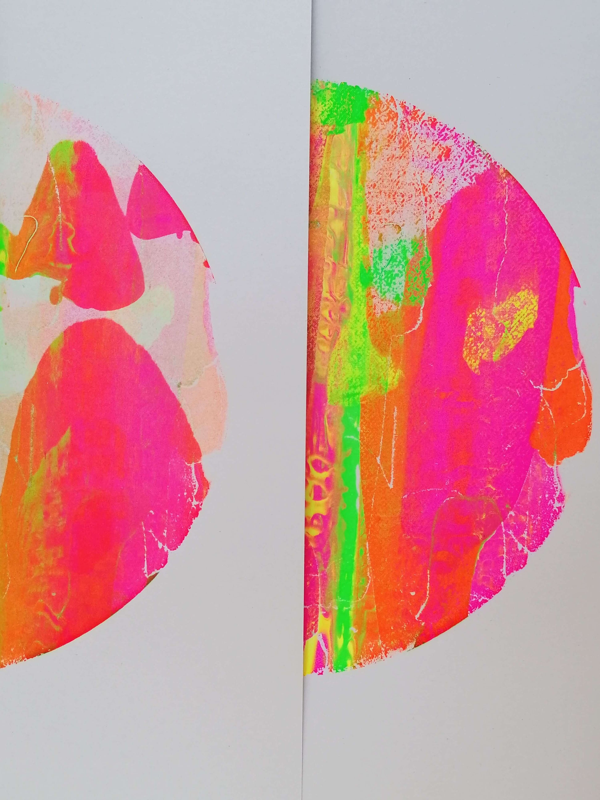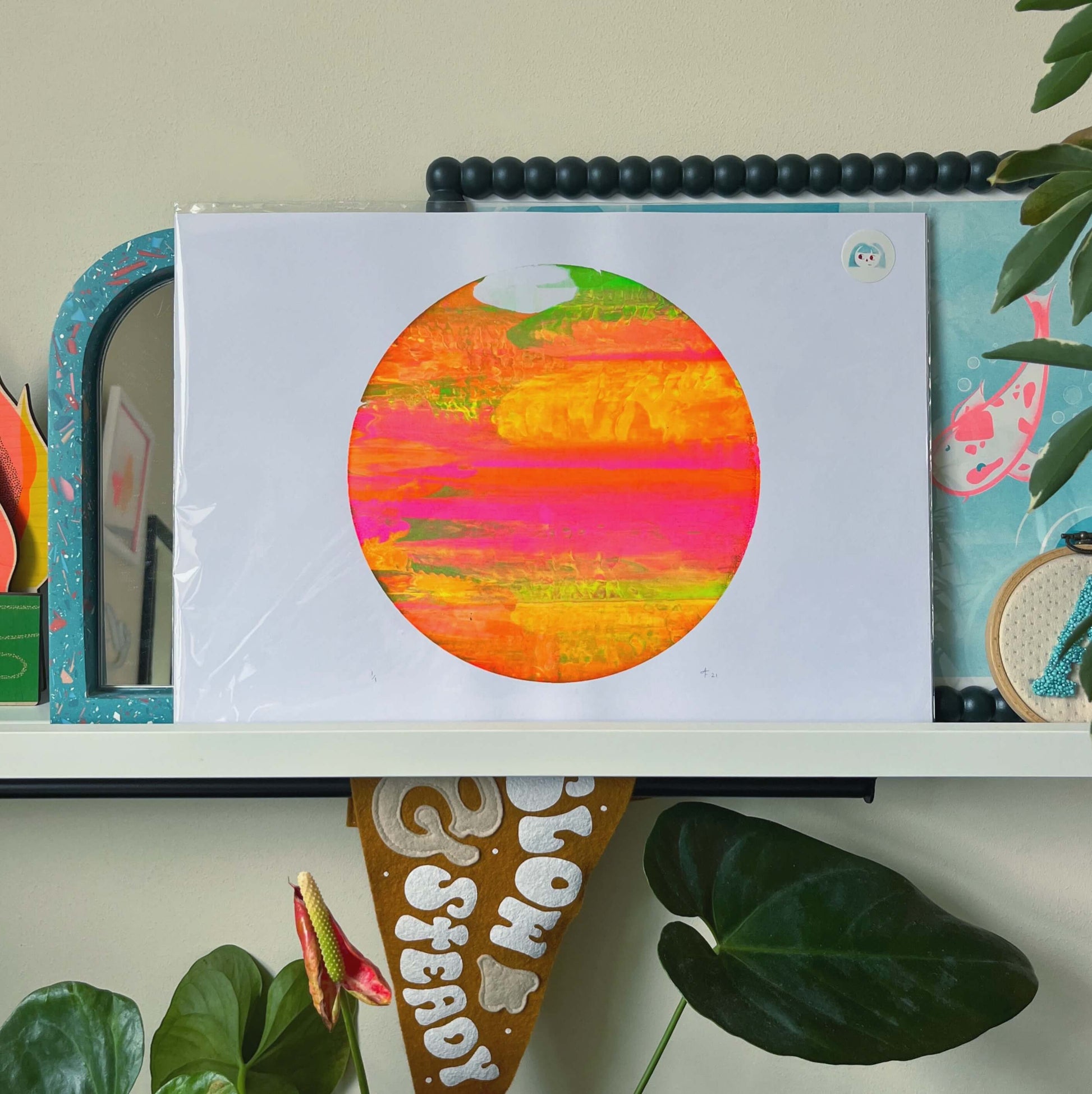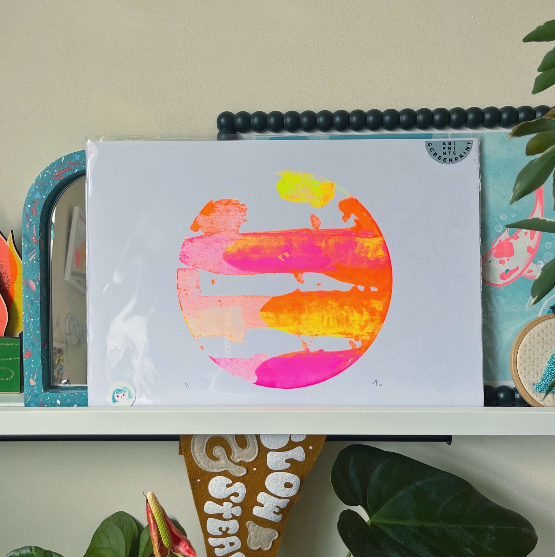 All of the screen prints in my store are hand pulled by myself. Each of these prints was created using fluorescent paints and a technique called mono-screen printing, meaning each print is truly unique. The neon paints shine in the daylight making this print really eye-catching.